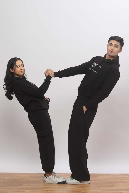 May Be Next Time Black Hoodie + Cargo Joggers Co-ord Set