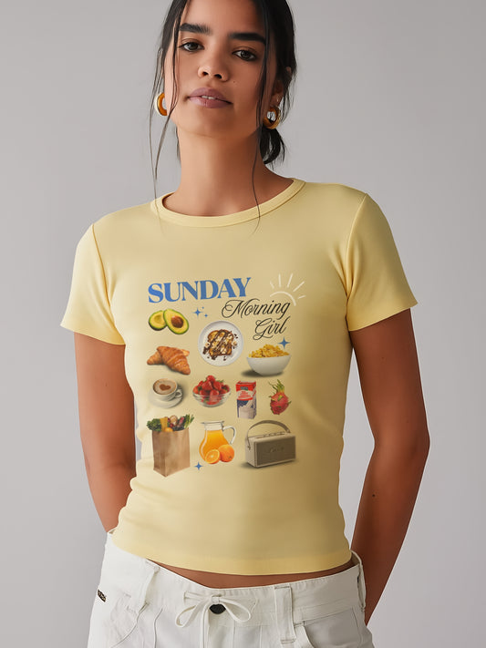 Sunday Morinig Girl Crop T-Shirt- Yellow