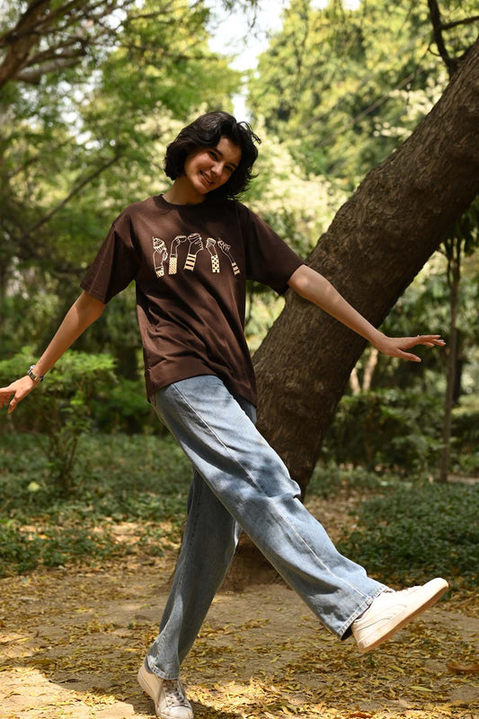 Brown+Beige Oversized T-Shirt (Combo of 2)