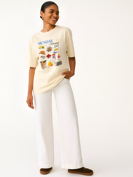 Sunday Morinig Girl Oversized T-Shirt- Beige
