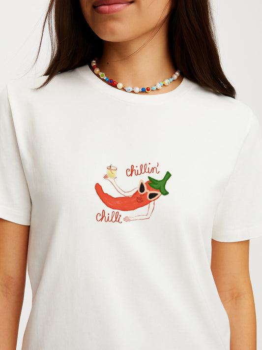 Chilling Chilli T-Shirt- White Regular Fit T-Shirt
