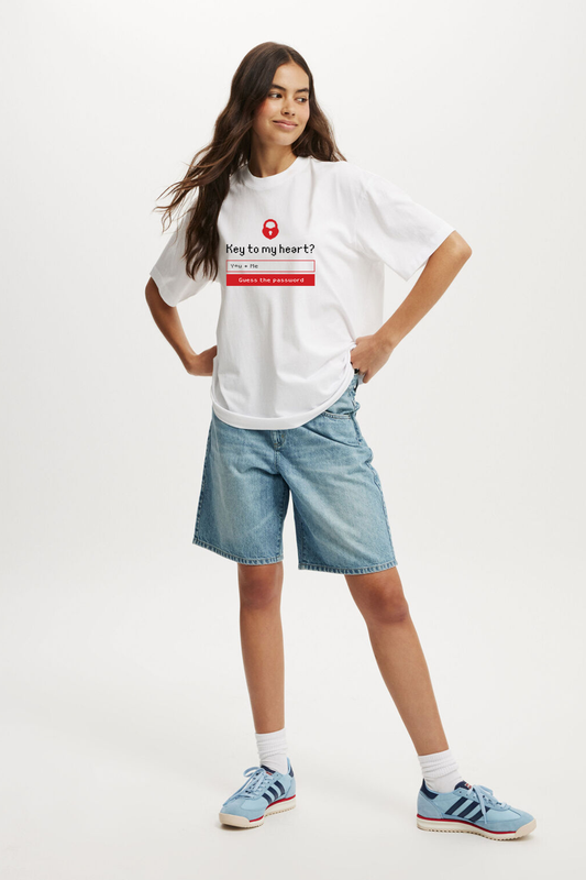 Heart & Key- White Couple Oversized T-Shirts (Combo of 2)