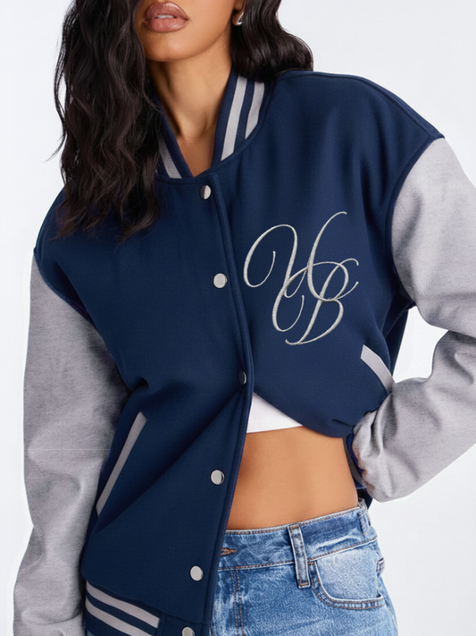 Navy Blue-Grey Varsity Jacket- UB