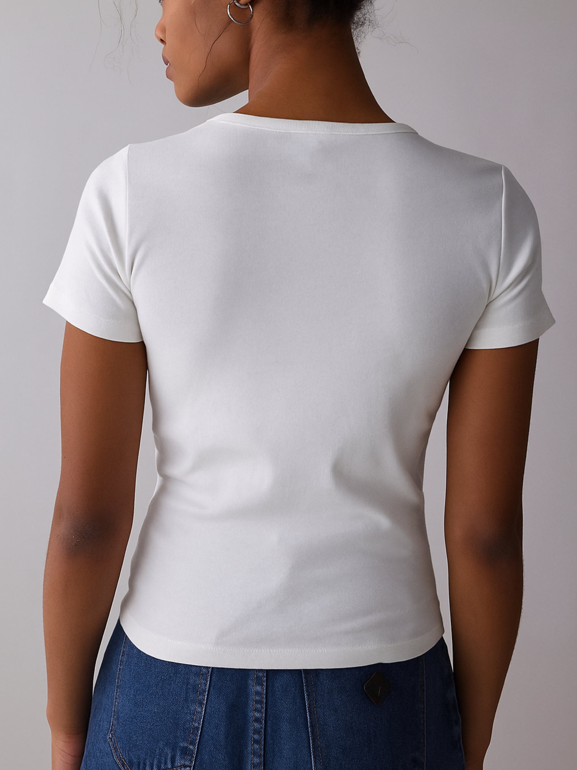 This cropped and fitted printed tee gives you the perfect blend of comfort and chic. Ideal for summer styling — from campus hours to casual nights out.