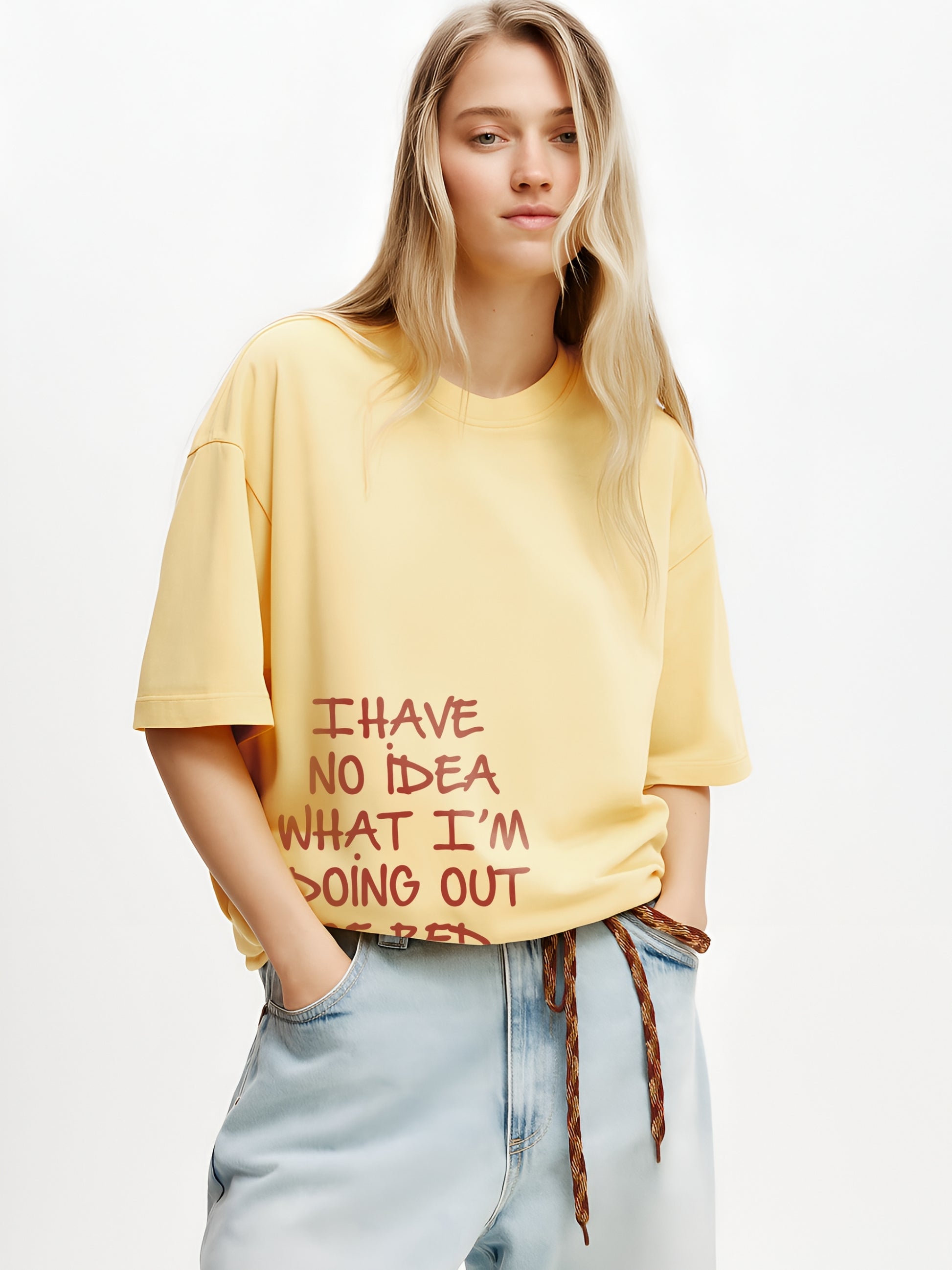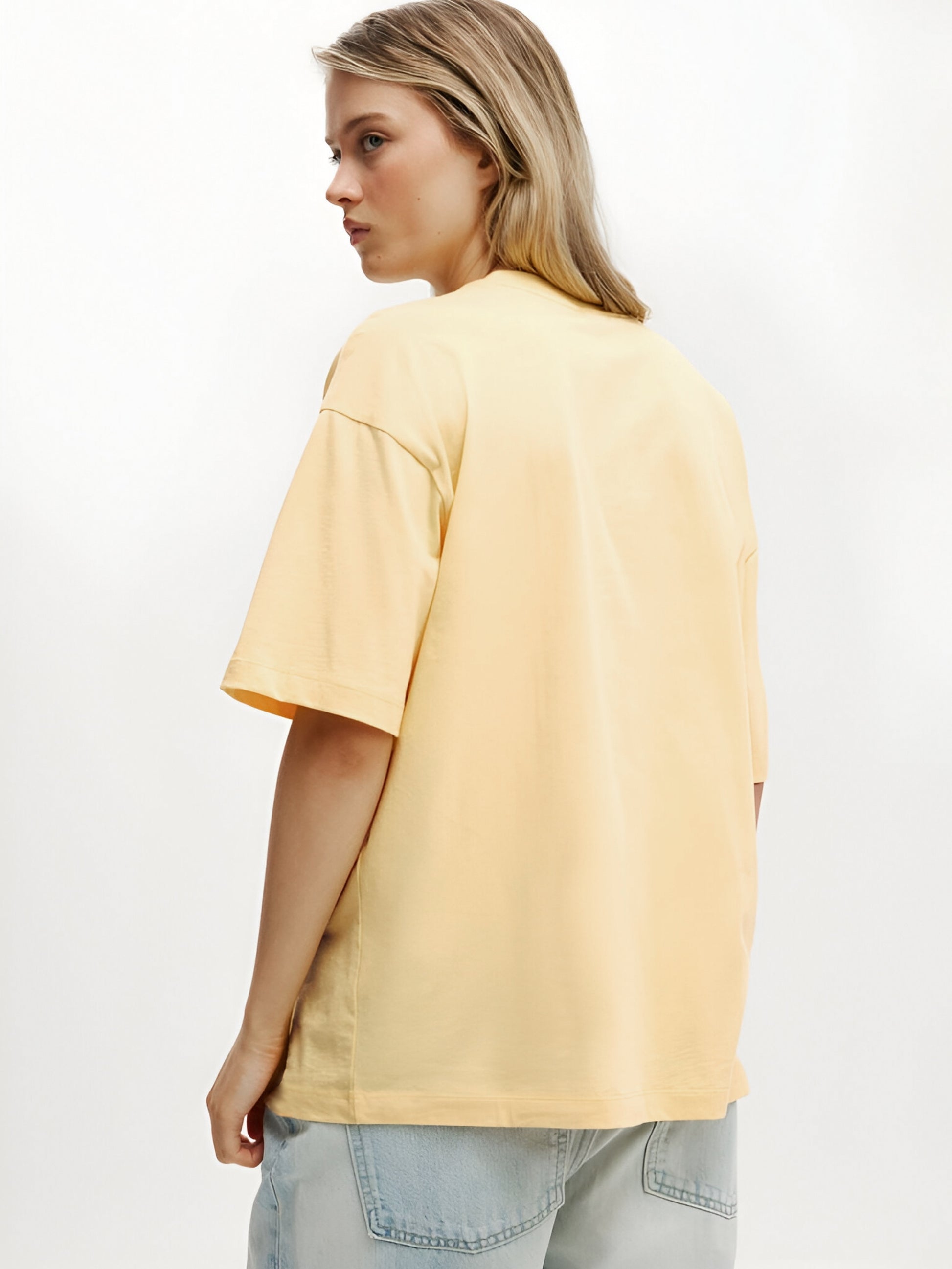 This printed oversized T-shirt for women is crafted in soft, breathable cotton—perfect for Indian summers. Featuring a trendy drop shoulder fit and eye-catching graphic, it’s made for lounging, brunching, or just chilling in style. Pair it with biker shorts or denim for a relaxed look.
